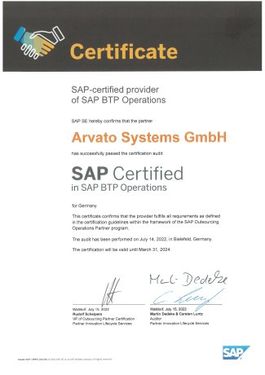 - Arvato Systems ist eines von nur drei Unternehmen weltweit, die die SAP®-Zertifizierung für Outsourcing-Partner im Bereich SAP Business Technology Platform erhalten haben
