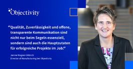 Frankfurt am Main, 03.10.2022 (PresseBox) - Janine übernimmt die Rolle des Director of Manufacturing bei Objectivity. 18 Jahre lang hat sie in der Industrie gearbeitet, von kleinen Familienbetrieben bis hin zu Konzernen. Produziert wurde Equipment zur Automatisierung im Labor, über Dämmstoff und Bauverbundfolien, Microschicht-Korrosionsschutzlack für den Automotive-Bereich, Bautenfarben und Lacke. Und dabei hat Janine schon immer nach Optimierungen gesucht, um die Flexibilität zu erhöhen und Kosten einzusparen.