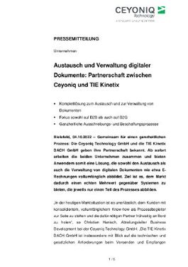 Die Partnerschaft zwischen den beiden Unternehmen umfasst neben der Verknüpfung der jeweiligen Lösung und einem engen Austausch auch die aktive Vermarktung der Partnersoftware gegenüber Bestands- und Neukunden. Darüber hinaus wird die Vernetzung mit weiteren Partnern zur Optimierung des Produktportfolios vorangetrieben. Sowohl die Ceyoniq Technology als auch TIE Kinetix sichern durch strategische Partnerschaften ihre Marktposition und bauen diese weiter aus.