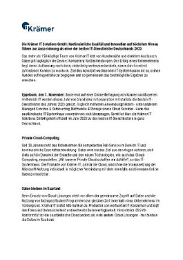 Die Krämer IT Solutions GmbH: Kontinuierliche Qualität und Innovation auf höchstem Niveau führen zur Auszeichnung als einer der besten IT-Dienstleister Deutschlands 2023