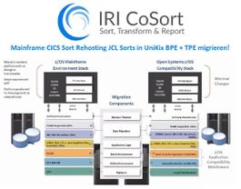 Lösungen: IRI CoSort ist Teil der NTT Data Mainframe Reference Architecture sowie eine seit Jahrzehnten bewährte Lösung für die Migration von Legacy-Sortiersoftware (einschließlich automatischer JCL-Parm-Konvertierung) und Anwendungsmodernisierung. Seit 1985, als CoSort erstmals auf Unix-Systemen zur Verfügung gestellt wurde, wurde es als "The Open Systems Standard" für Sortiersoftware weltweit bekannt.
