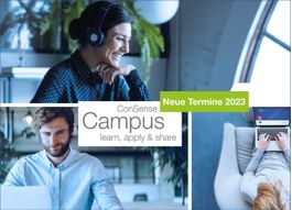 Die aktuellen ConSense Campus Termine für das gesamte erste Halbjahr 2023 sind bereits online. Eine schnelle Anmeldung lohnt sich, denn die Teilnehmerzahlen der Live-Veranstaltungen sind begrenzt, um auch individuelle Fragestellungen bestmöglich aufzugreifen. Ein kurzes Vorstellungsvideo gibt zum Einstieg einen kurzen Überblick in die verschiedenen Angebote von ConSense Campus.