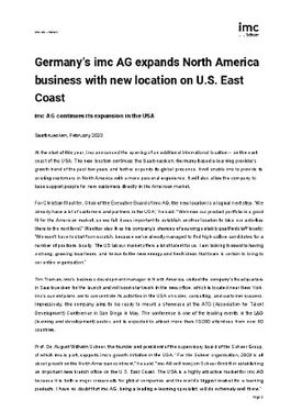 Saarbrücken, 10.02.2023 (PresseBox) - At the start of this year, imc announced the opening of an additional international location -- on the east coast of the USA. The new location continues the Saarbruecken,......