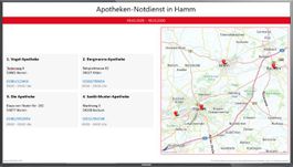 Hamm, 22.03.2023 (PresseBox) - In Deutschland sind Apotheken verpflichtet, außerhalb ihrer Öffnungszeiten Informationen zum Apotheken-Notdienst in der jeweiligen Region bereitzustellen. Oftmals geschieht dies aber immer noch auf herkömmlichem Wege über einen Papier-Aushang in einem Notdienstkasten oder im Schaufenster. Der Einsatz digitaler Lösungen bietet sich hier natürlich an, da so Zeit und Aufwand für die regelmäßige Aktualisierung eingespart werden kann und die digitalen Bildschirme auch während der Öffnungszeiten sinnvoll für Werbe- und Informationszwecke genutzt werden können.