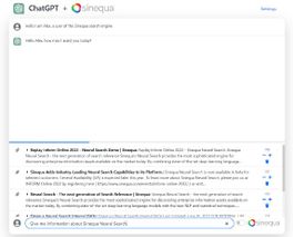 Generative LLMs wie die von ChatGPT passen perfekt zur Suche, da sie die Möglichkeiten zur Interaktion, Verfeinerung und Neuformulierung von Suchergebnissen erweitern. Sinequas GPT fasst die von Sinequas Neural Search gesammelten Informationen in wiederverwendbaren Formaten zusammen, die auf die spezifischen Bedürfnisse des Einzelnen zugeschnitten sind. In einem interaktiven Dialog können User weitergehende Fragen stellen und ihre Suche sowie die Antworten verfeinern.