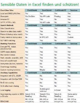 - IRI DarkShield wurde in erster Linie für das Auffinden und Maskieren von Daten in halbstrukturierten und unstrukturierten Text- und EDI-Dateien, RDB C/BLOB-Spalten, NoSQL-DB-Sammlungen, Bildern und Dokumenten in PDF- und MS-Office-Formaten entwickelt - einschließlich XLS- und XLSX-kompatibler Dateien, die sogar PII in Diagrammen und Bildern in den Tabellen enthalten können