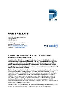 Hartenholm, 03.05.2023 (PresseBox) - At the Interpack trade show, Possehl Identification Solutions (PID) presents its new software platform PID 3SIXTY, a state-of-the-art print and data management and......