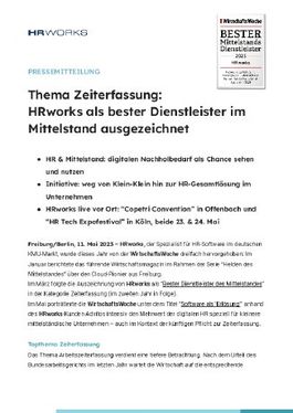 Im März folgte die Auszeichnung von HRworks als “Bester Dienstleister des Mittelstandes” in der Kategorie Zeiterfassung (im zweiten Jahr in Folge).