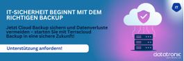 Ein Cloud Backup ist unerlässlich, um Ihre Daten vor Verlust zu schützen und die Geschäftskontinuität zu gewährleisten. Terracloud Backup bietet eine zuverlässige und benutzerfreundliche Lösung, die Ihnen die Sicherheit gibt, dass Ihre Daten jederzeit geschützt und wiederherstellbar sind. Investieren Sie in die "Lebensversicherung" für Ihre Daten und sichern Sie sich gegen unvorhersehbare Ereignisse ab.