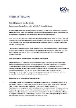 Markus Kretschmer, Managing Director der ISO Travel Solutions GmbH: „Die neue Sun&Beach IBE ist für die ISO-Gruppe ein zentraler Baustein unserer neuen Plattform-Generation für Pauschal-reiseveranstalter. Seit vielen Jahren sind ISO-Systeme bei Spezialveranstaltern im In- und Ausland im Einsatz – jetzt kommen klassische Badepakete mit hochdynamischer Paketierung hinzu.“